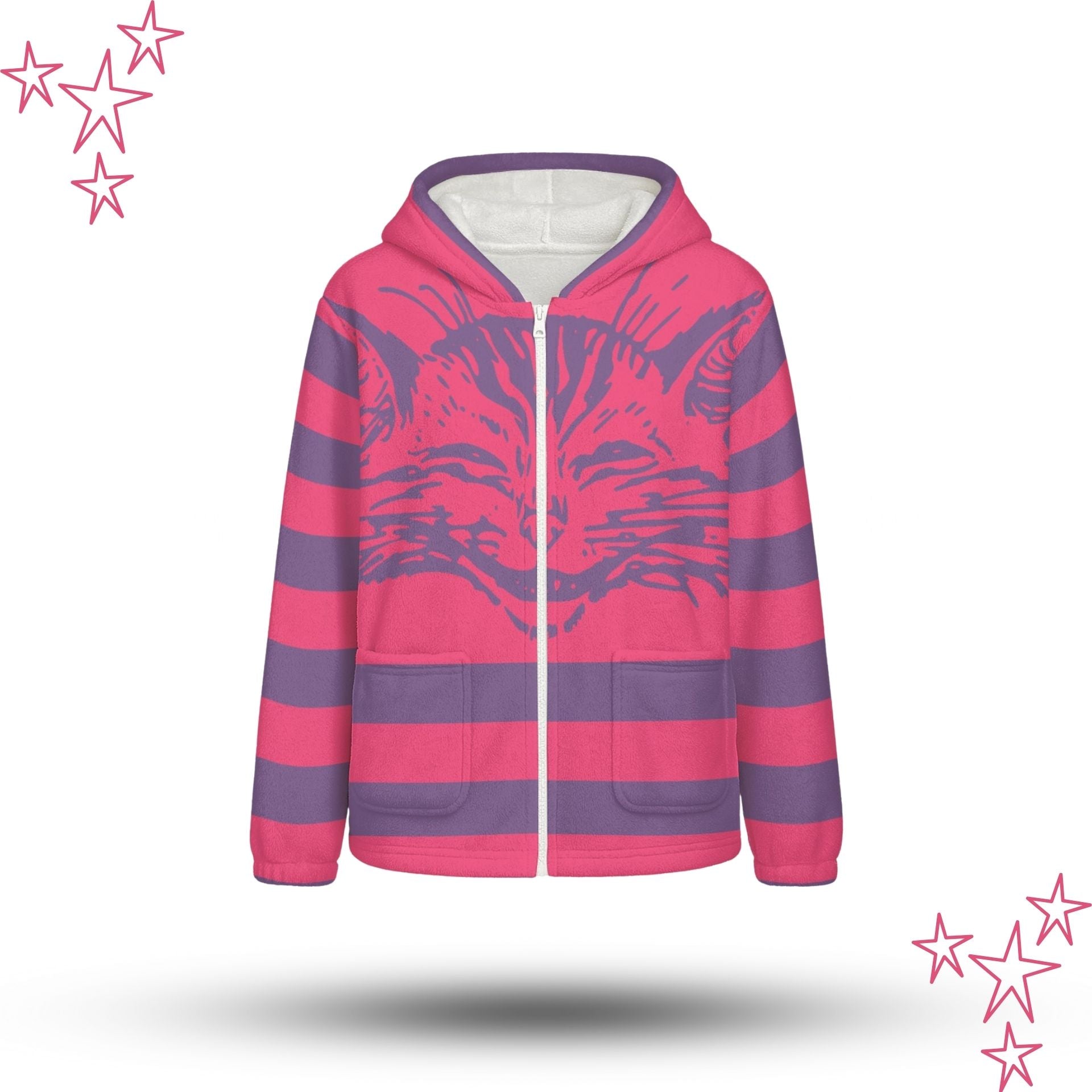 Kapuzenpullover mit Reißverschluss und Cheshire-Katzenohren aus flauschigem Fleece