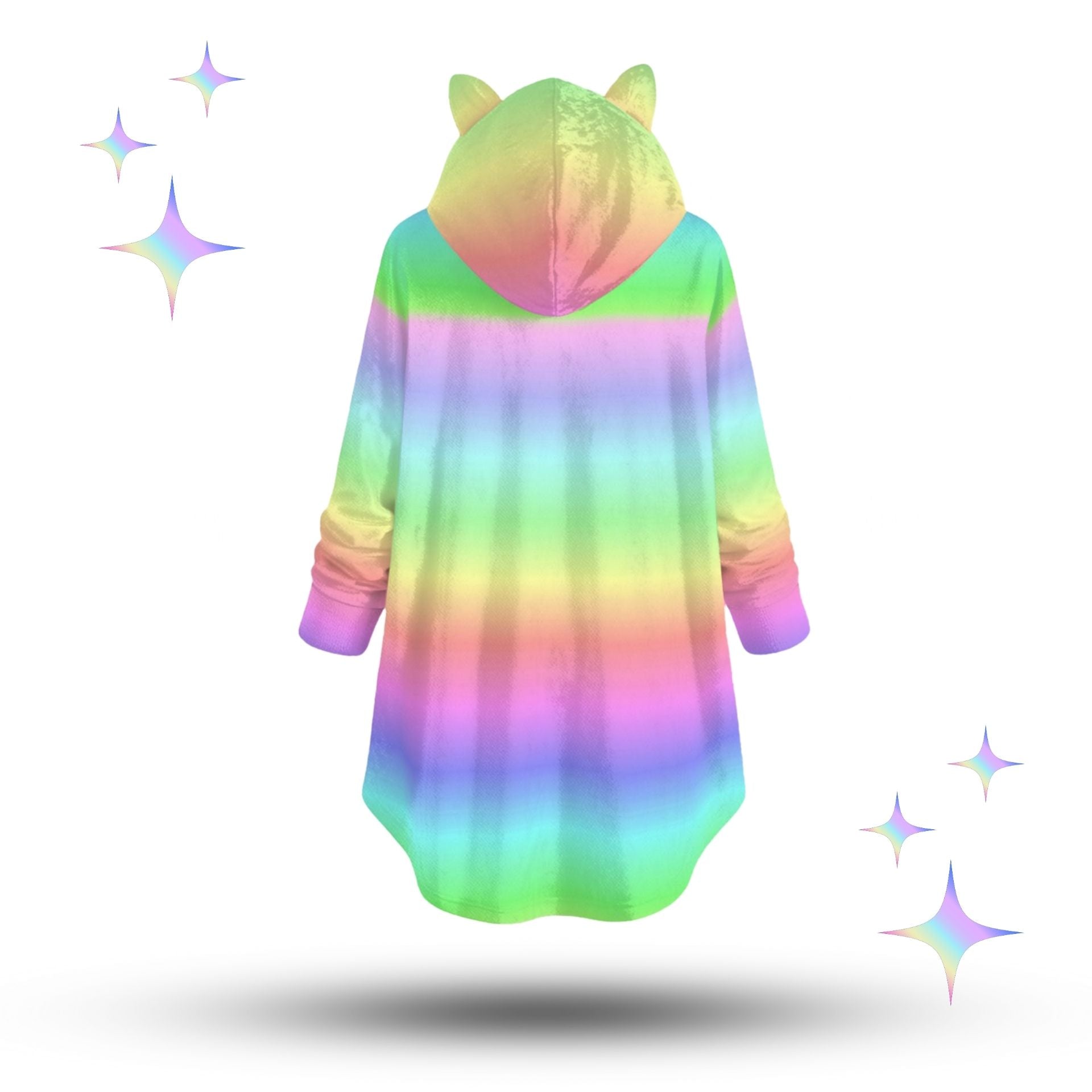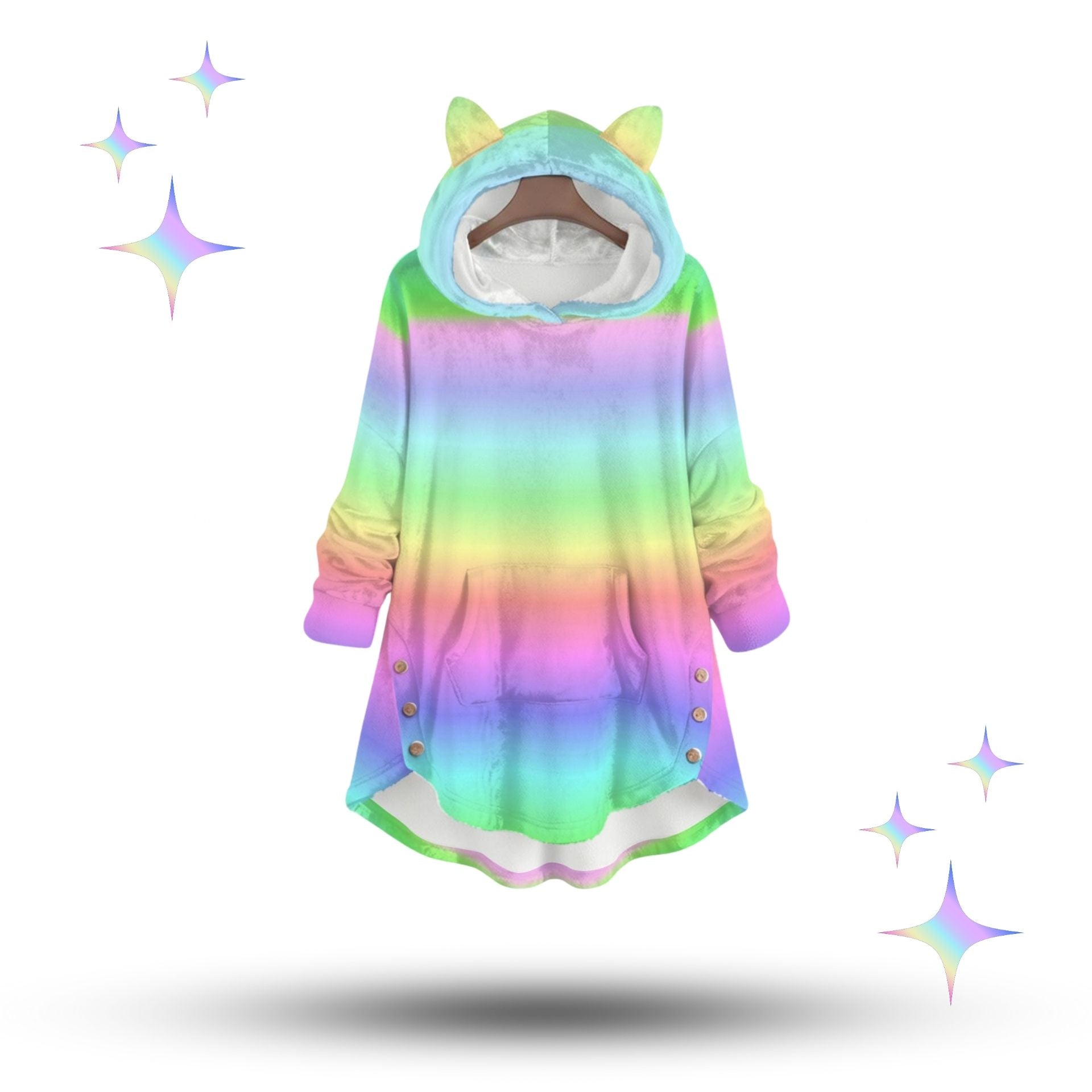Pastellfarbener Kawaii-Kapuzenpullover mit Katzenohren und Regenbogen-Farbverlauf in Damengrößen S-5XL (US). Super gemütlich und perfekt zum Campen, für Festivals, ein kühles Büro, ein überklimatisiertes Kino oder einfach zum Entspannen zu Hause!