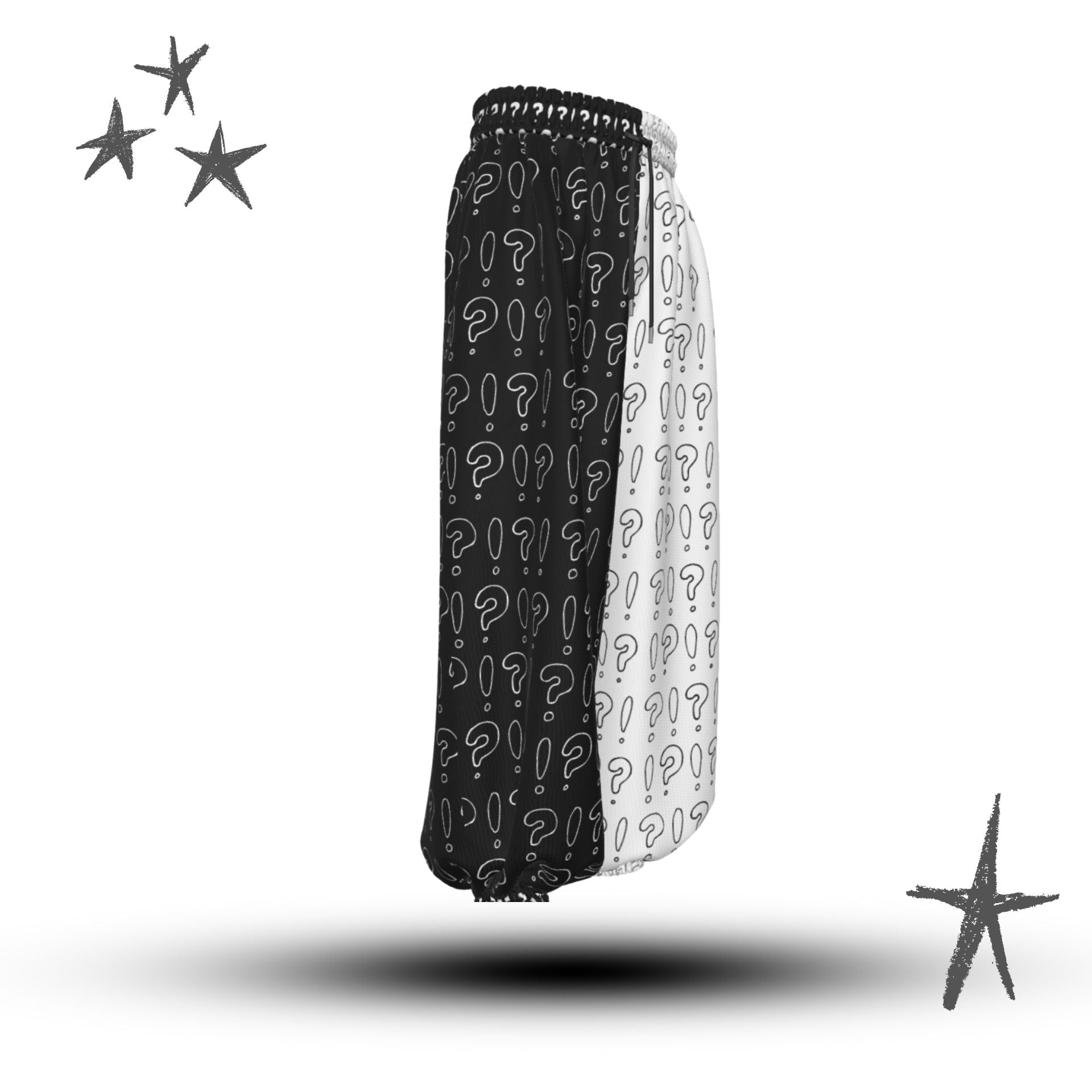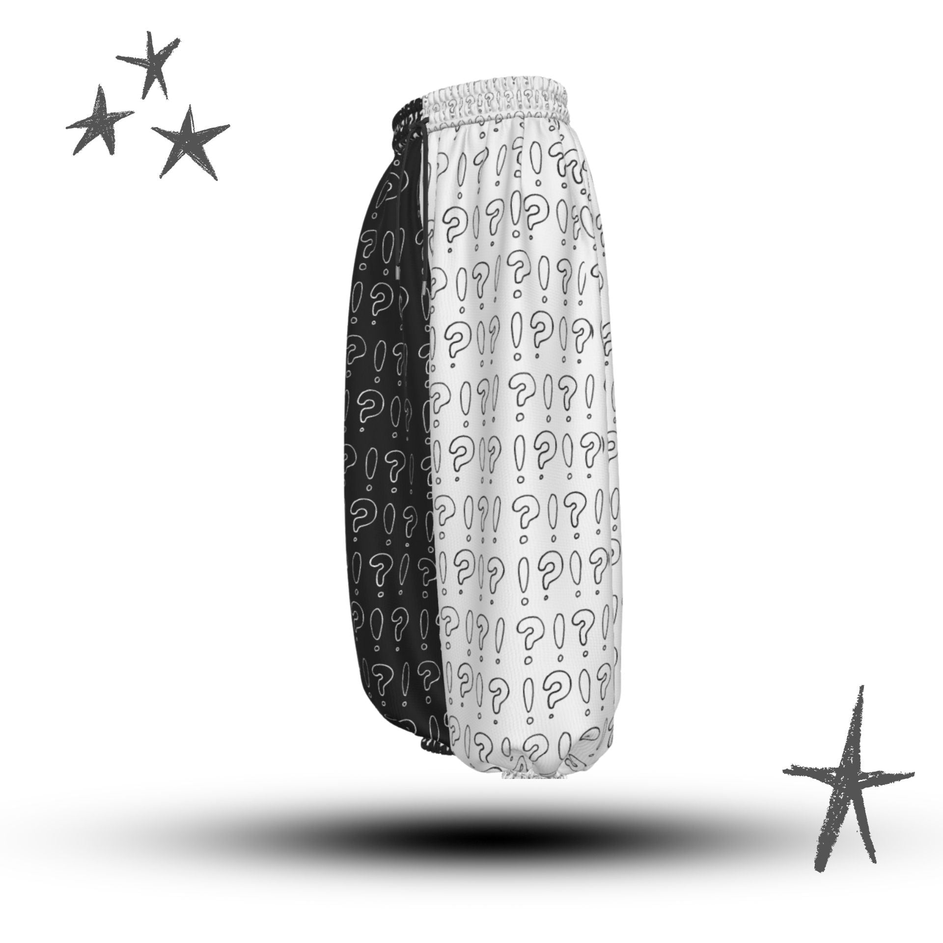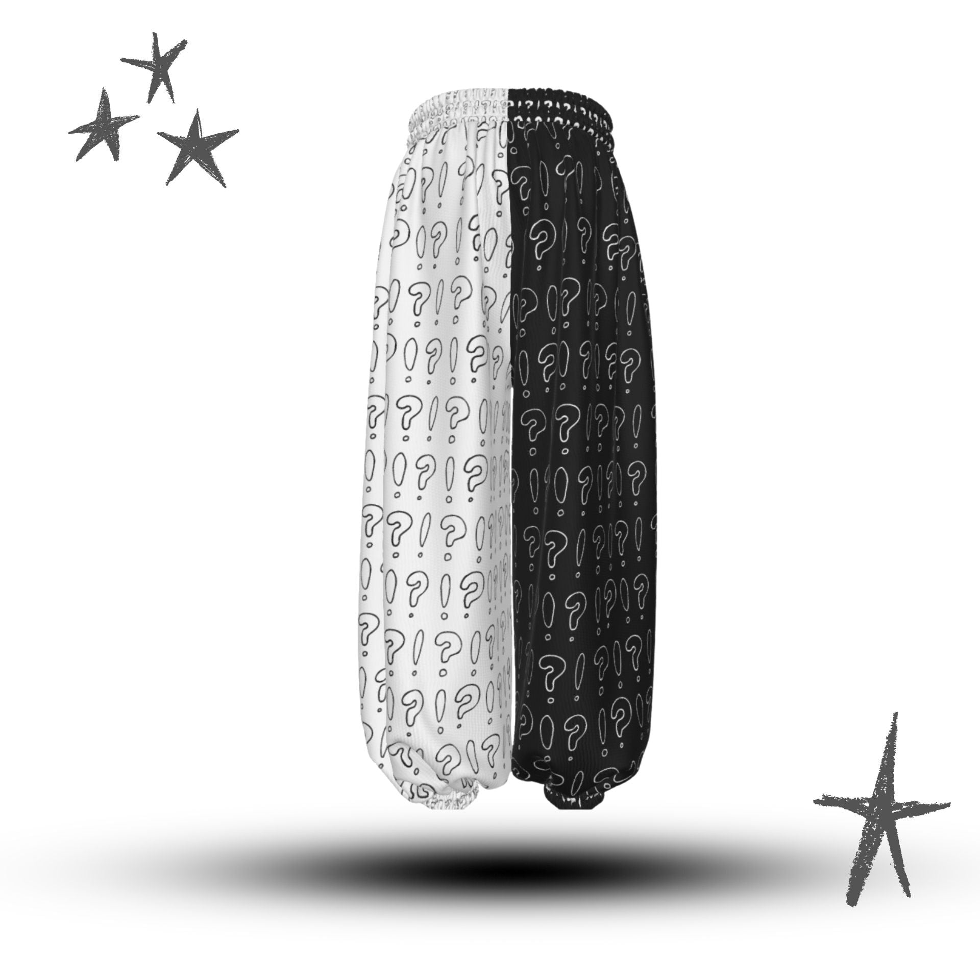 Interrobang auf schwarz-weißen Baggy-Clownshosen von AbyssWares