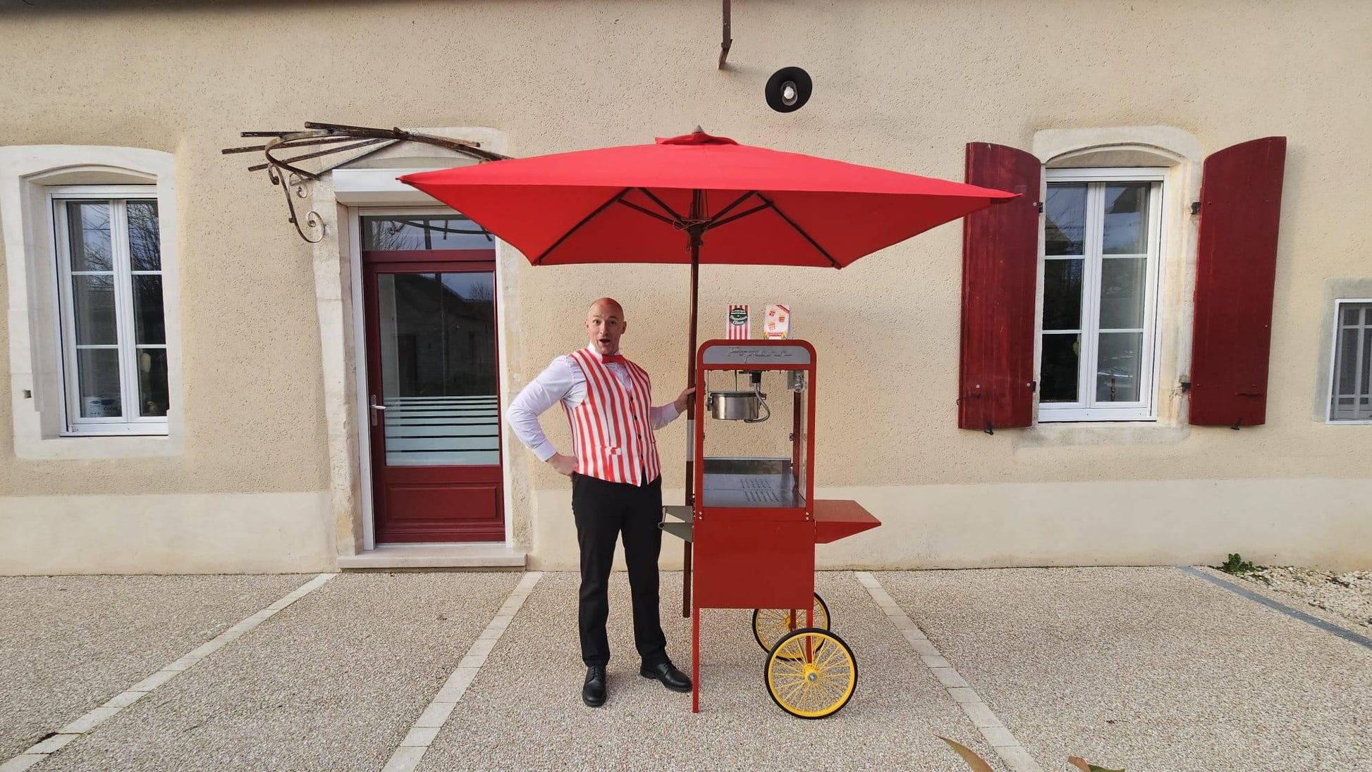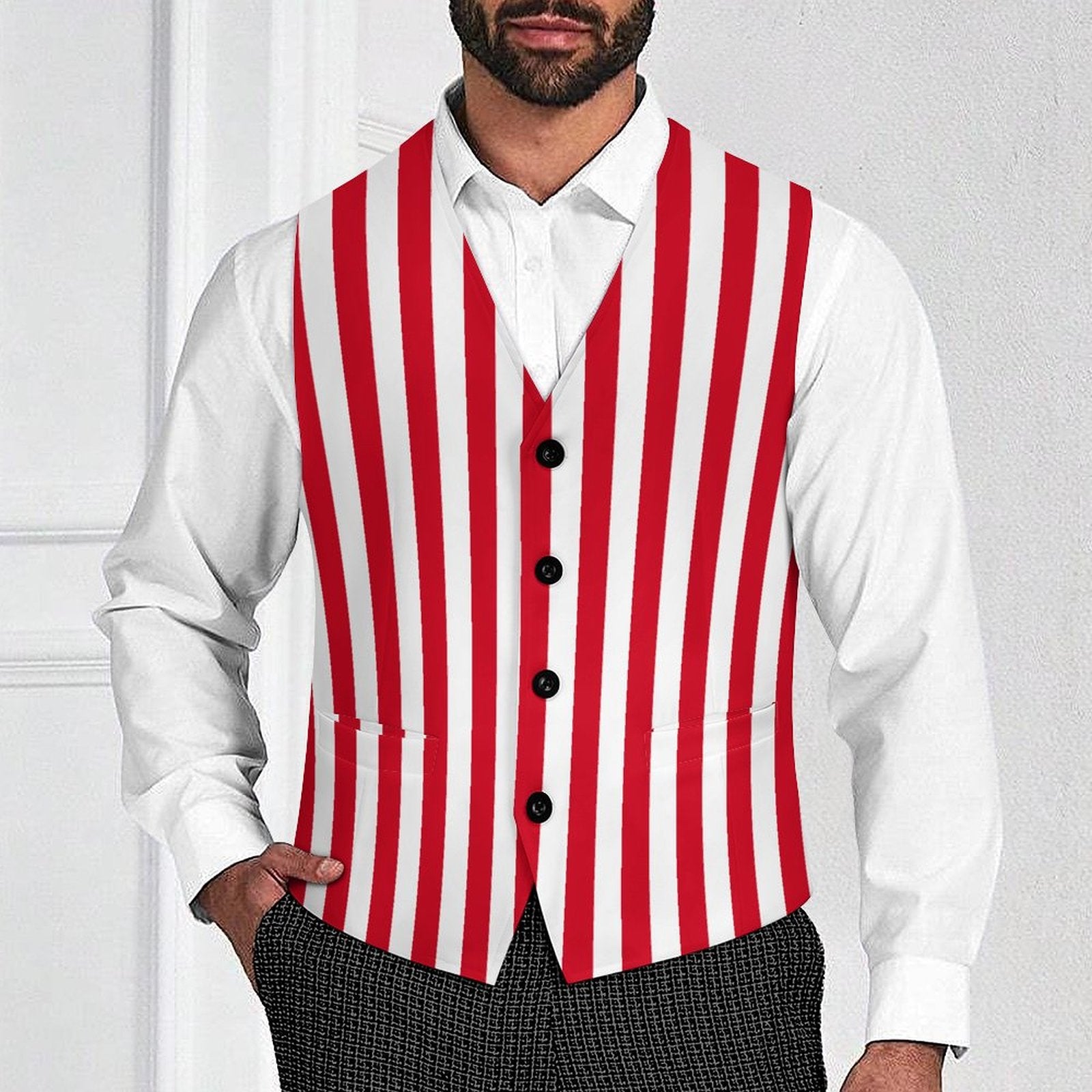 Rot-weiß gestreifte Herrenweste im Stil eines Eisdielenbesitzers