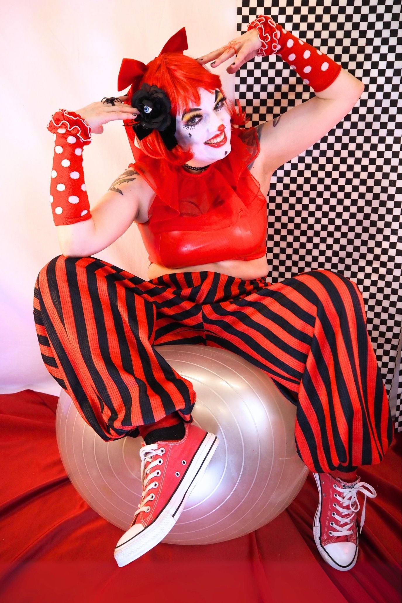 Ropa, calzado y equipo de circo clowncore para profesionales del payaso y solo por diversión en Abysswares. Tu hogar para la moda estética alternativa: diseños independientes de mujeres con envíos globales con huella de carbono neutra y un enfoque ecológico: fabricación individual.