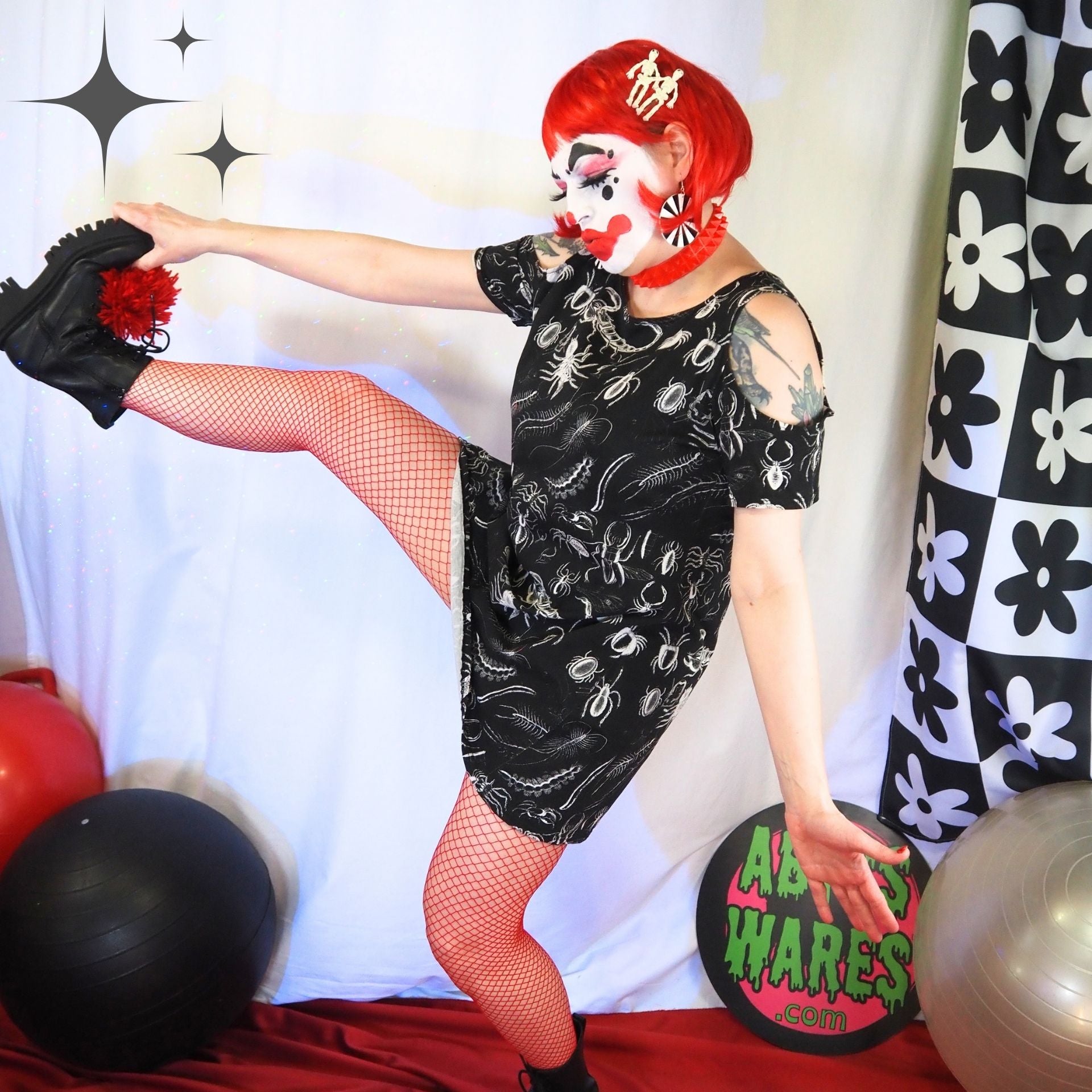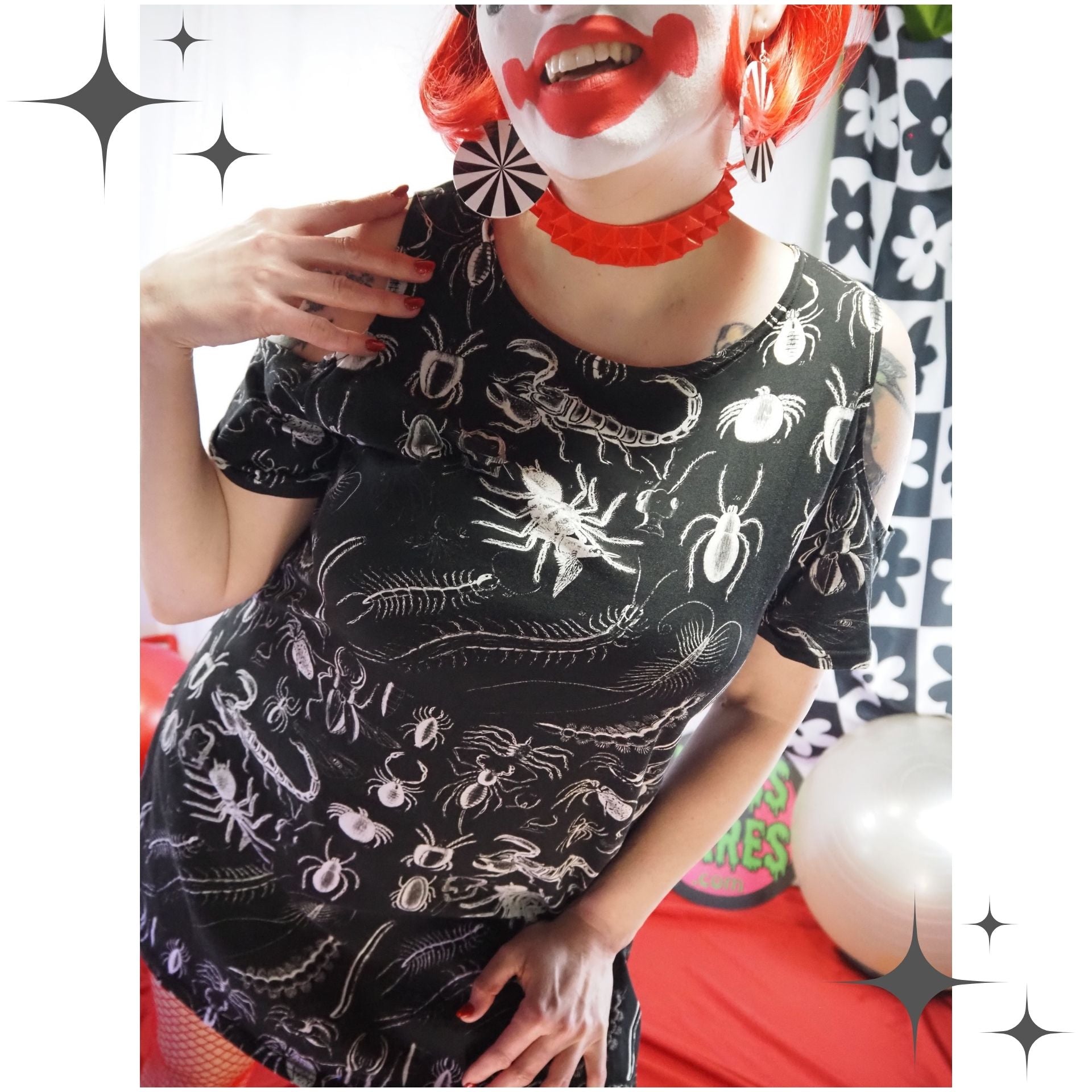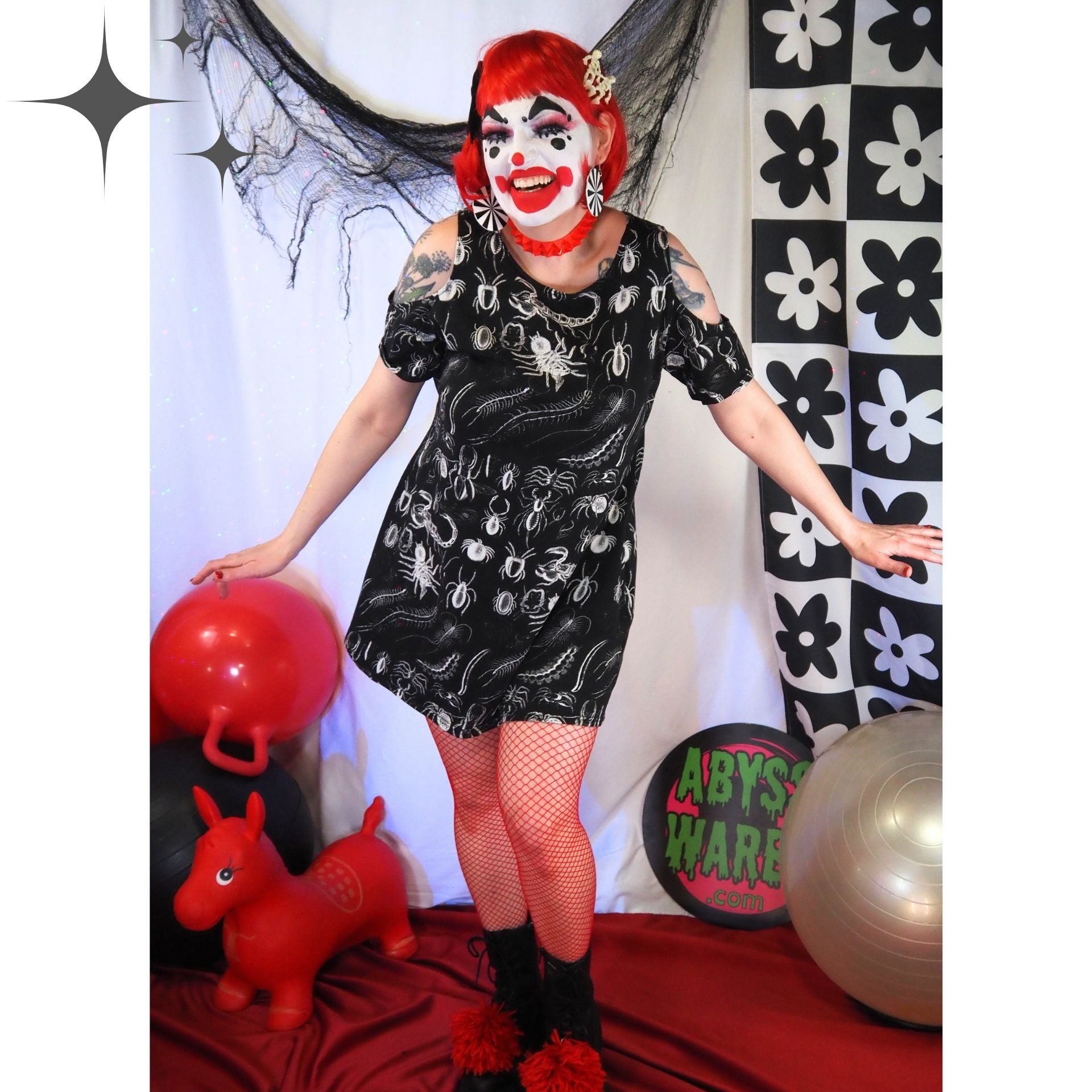 Rarezas de vitrina, el gótico académico oscuro es todo un éxito en este vestido veraniego gótico, monísimo y espeluznante, hecho completamente de algodón. Los hombros al aire son perfectos para lucir tatuajes y es el vestido perfecto para el calor; querrás usarlo a diario. Combínalo con una chaqueta corta y botas altas y ¡guau, reina de la escena!