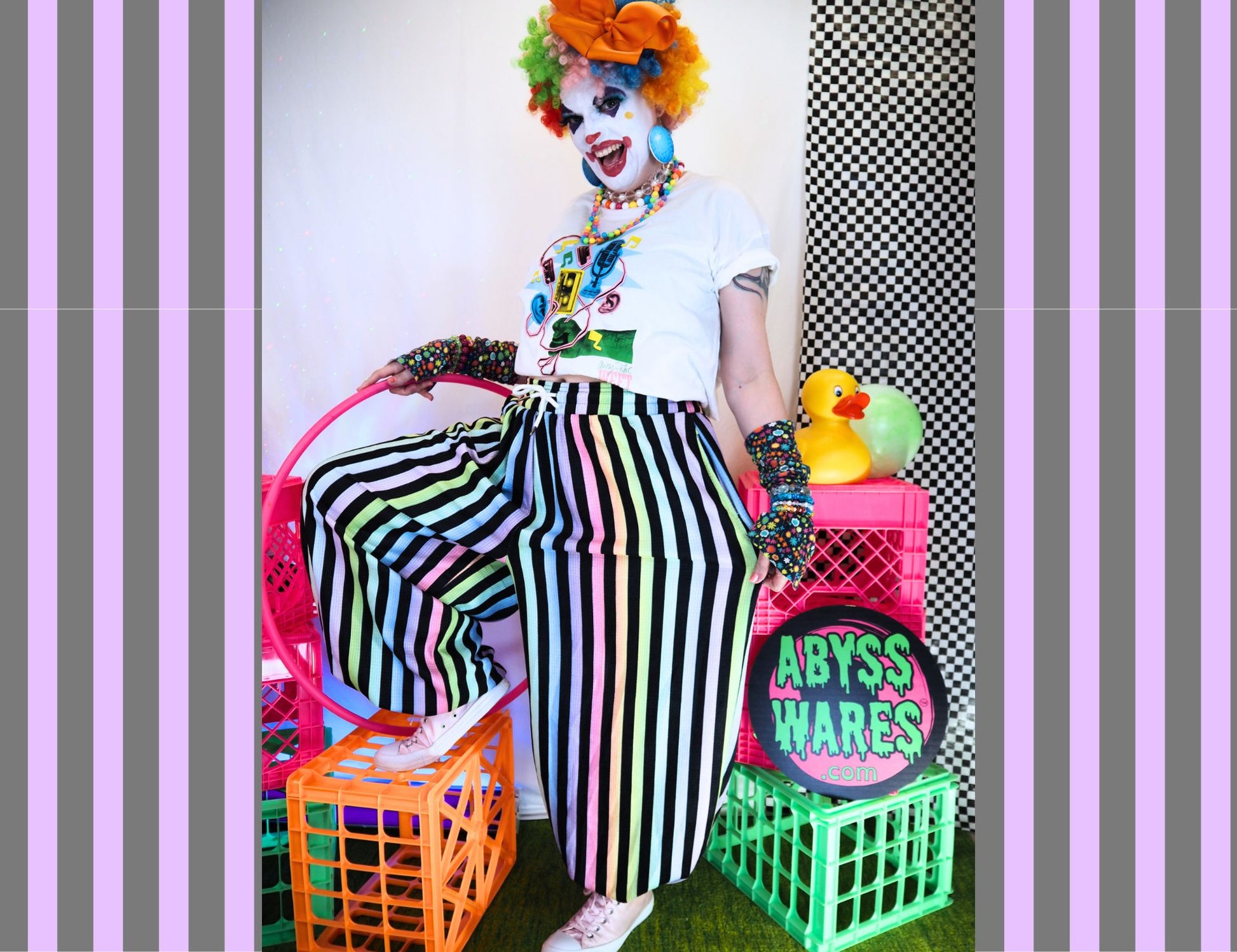 Abysswares is your indie alternative fashion shop online for the weirdest clothes, clowncore, kidcore, decora kei alt aesthetic clothing, clown costumery and tomfoolery! Women-owned business based in the USA, shipping artisanal weirdcore fashions all over the world :)