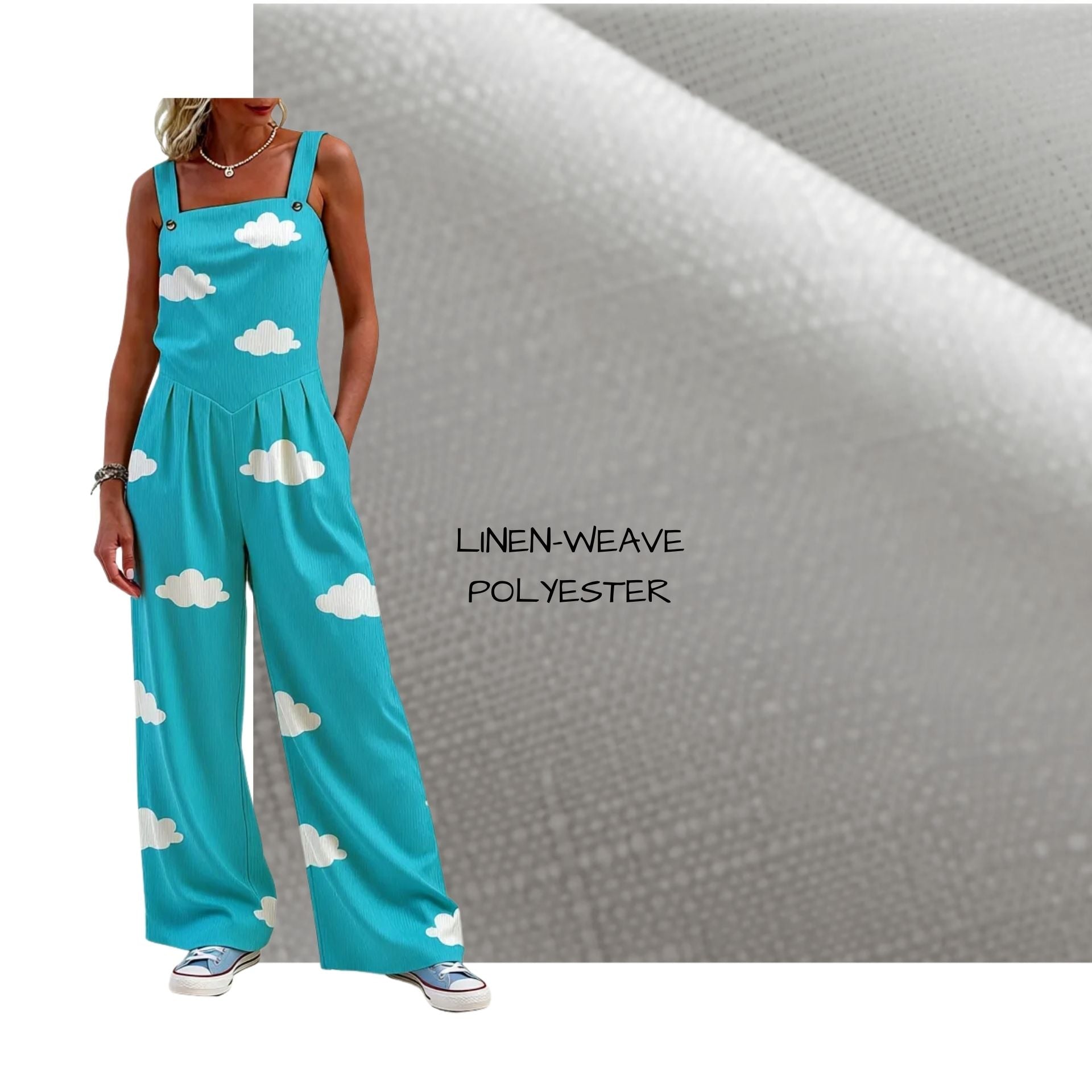 Wide-leg palazzo pants-style overalls with a dreamy blue sky and kawaii cute clouds pattern. Side pockets, adjustable straps, and linen-esque textured polyester material that is light, breathable and flowy. Plus size up to 8XL available!!!