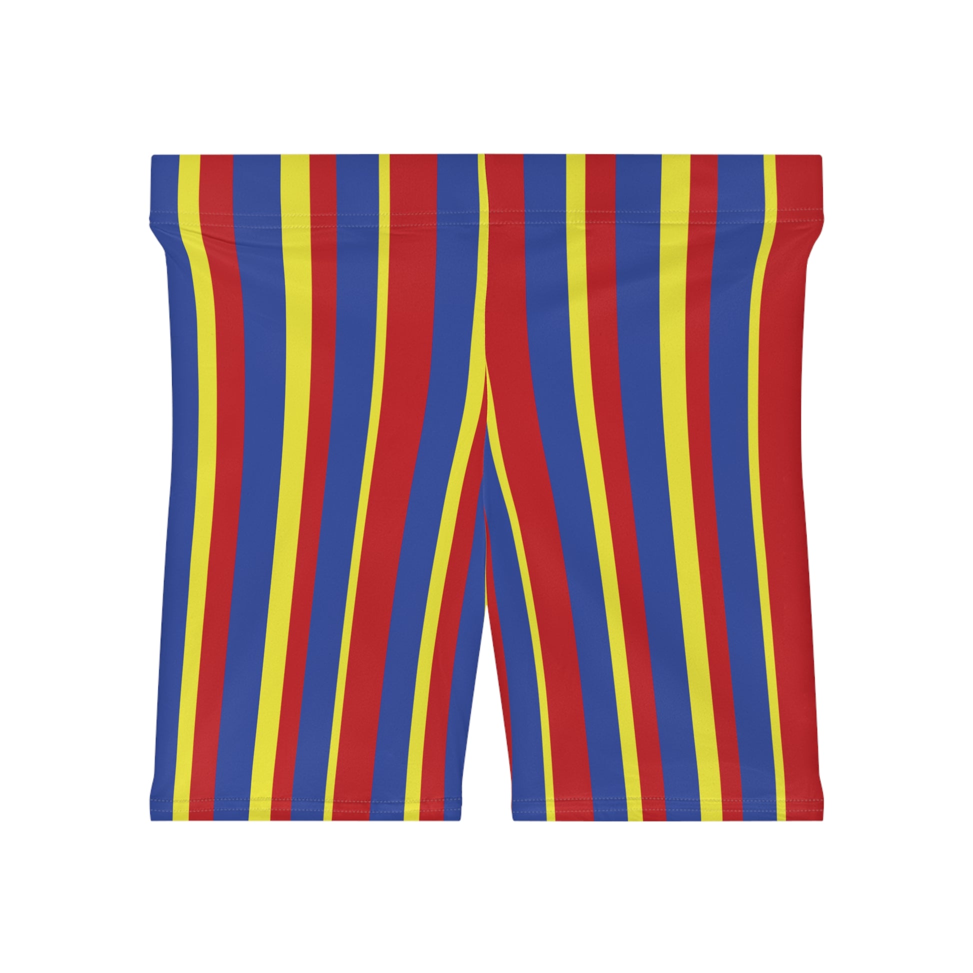 Our Clown Stripes Bike Shorts for women are perfect for circus clown costumes, yoga, workouts, or gymnastics. Bright primary colors give a classic circuscore look. Made in the USA!