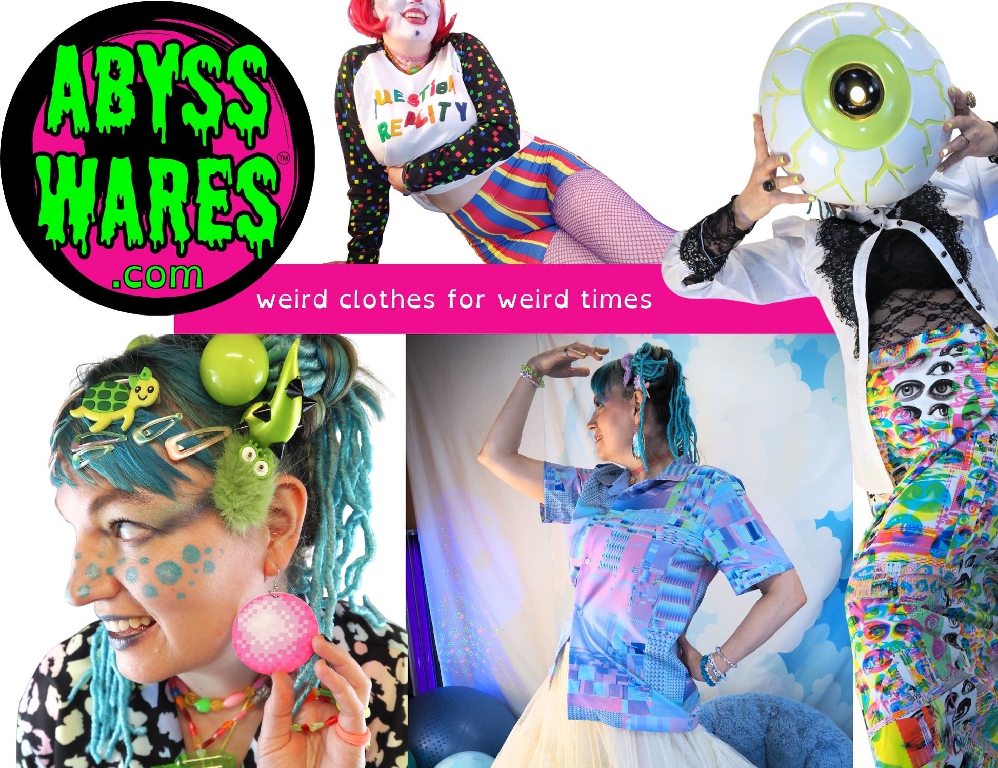 YESDOUBLEYES has FREE GLOBAL SHIPPING🌎 alt clown punk fashions for Pride fest, rave, Burning Man, music festivals, roller derby, funky drag groovy party wear Specially made-to-order and worth the wait! Original artwork by yesdoubleyes