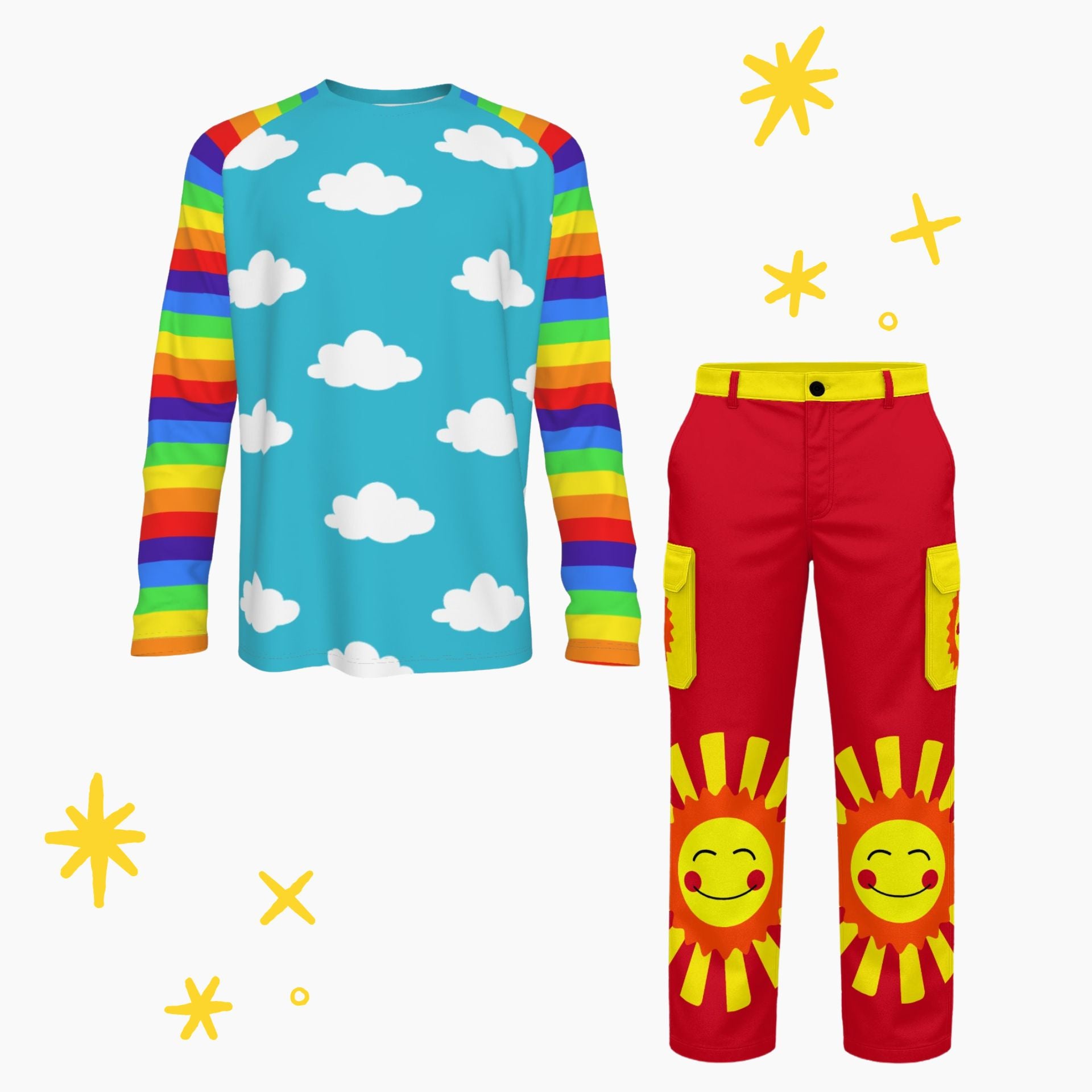 Spread sunshine by clowning around in these red and yellow sunny sunshine cargo pants! Available in mens/unisex sizes 2XS-5XL in a durable yet soft and breathable woven polyester fabric.