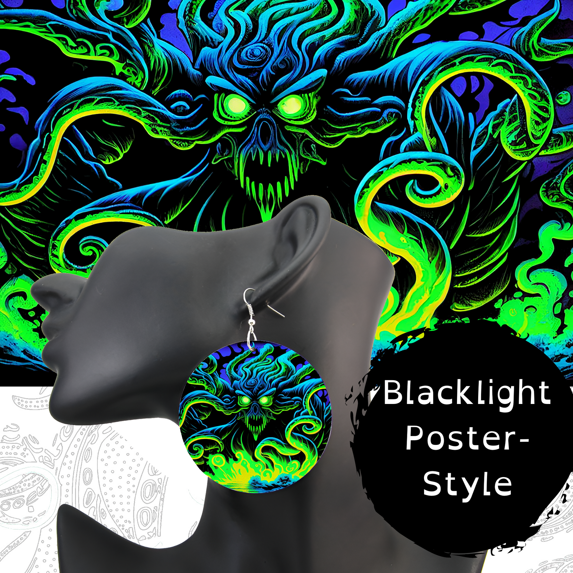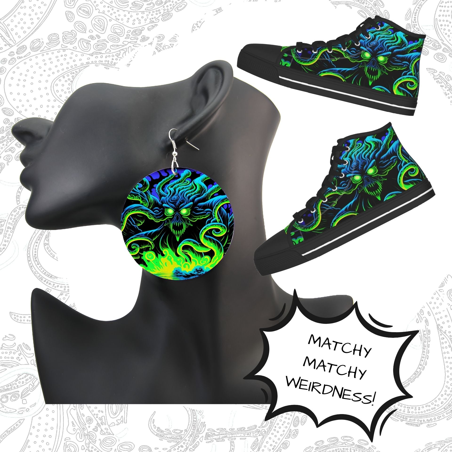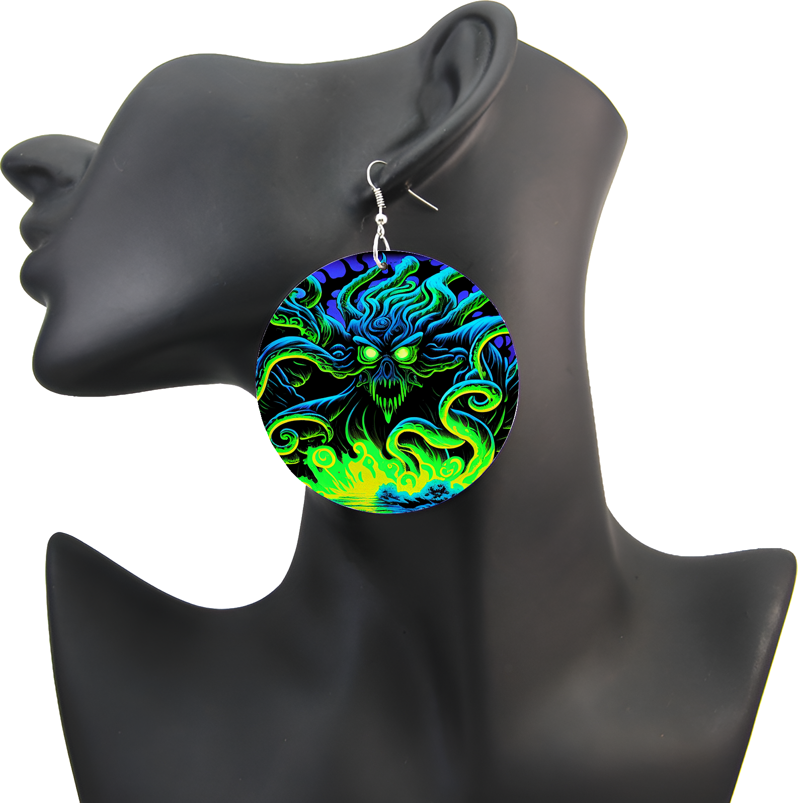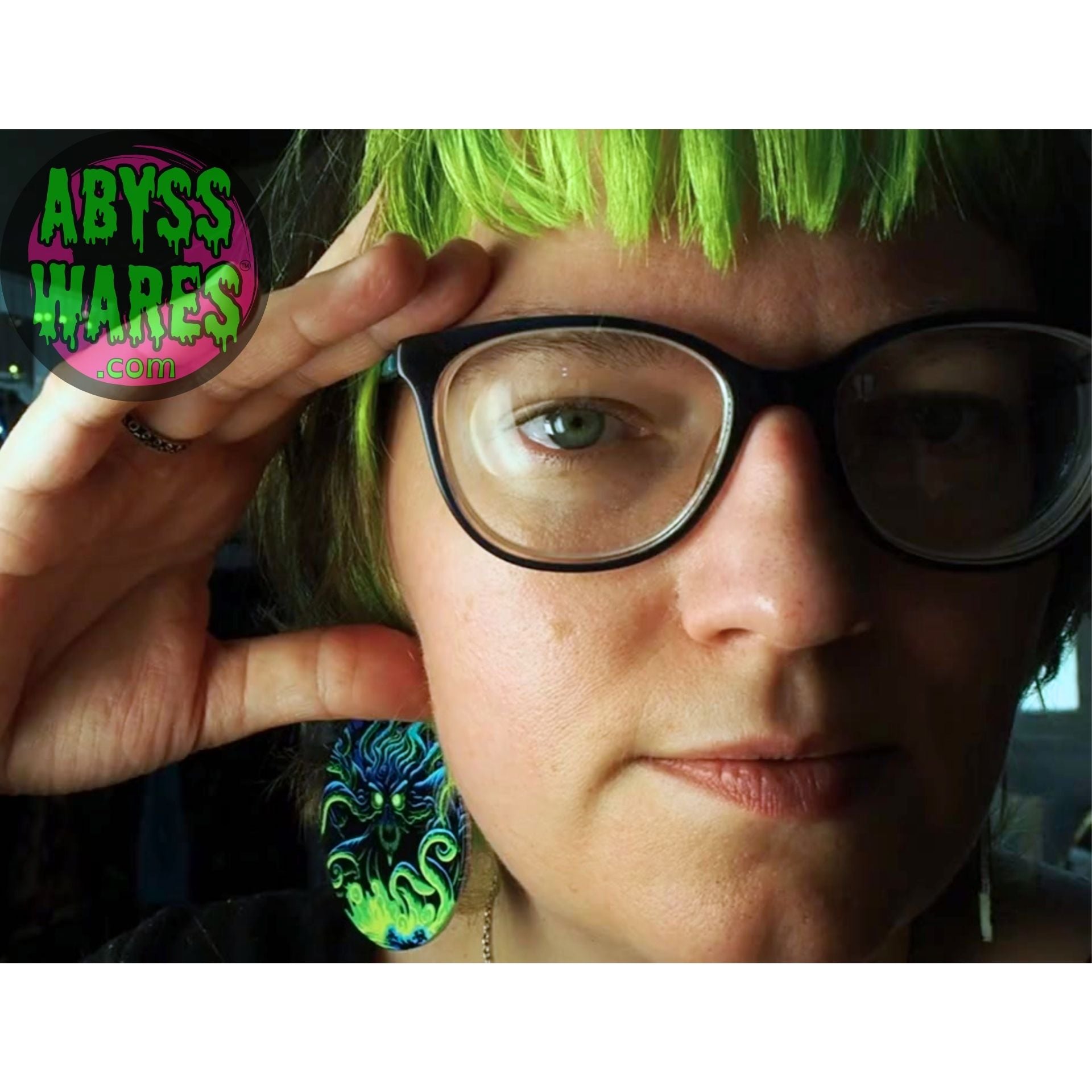 Neon Rage Cthulhu 木耳环是奇异的触手野兽艺术耳环,为您的审美带来奇异的绿色怪异感。