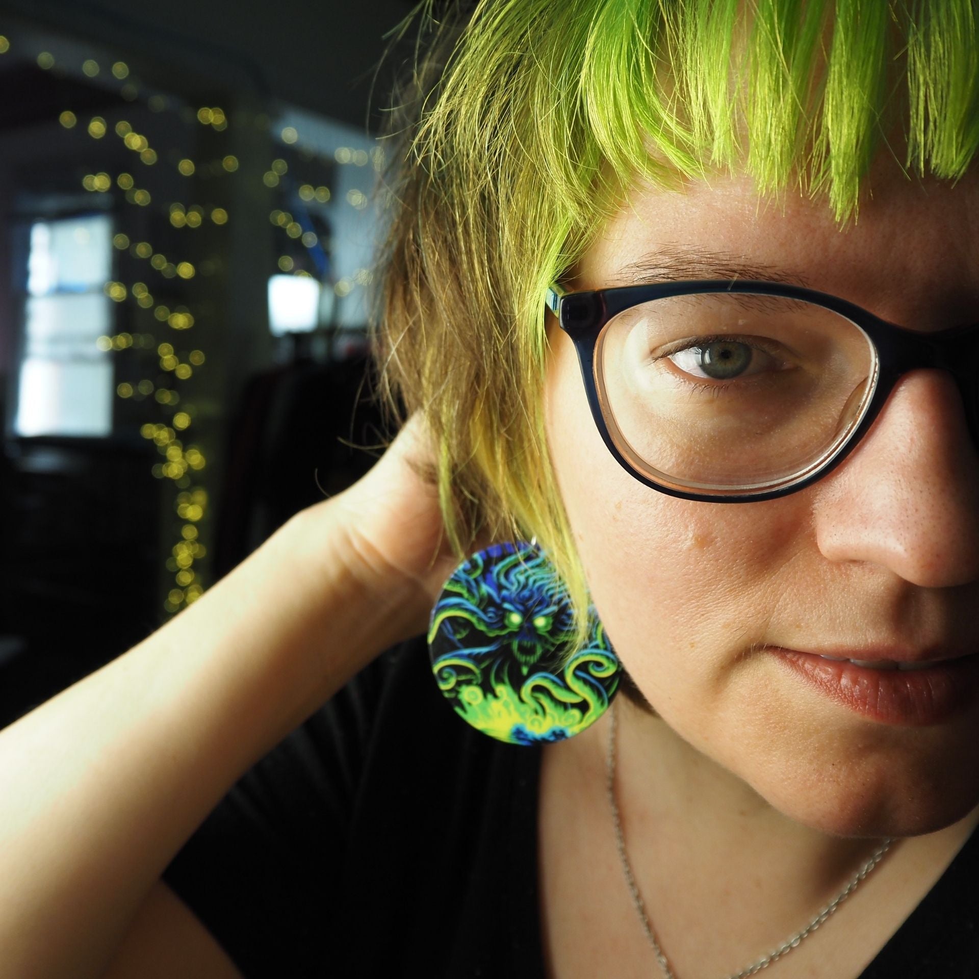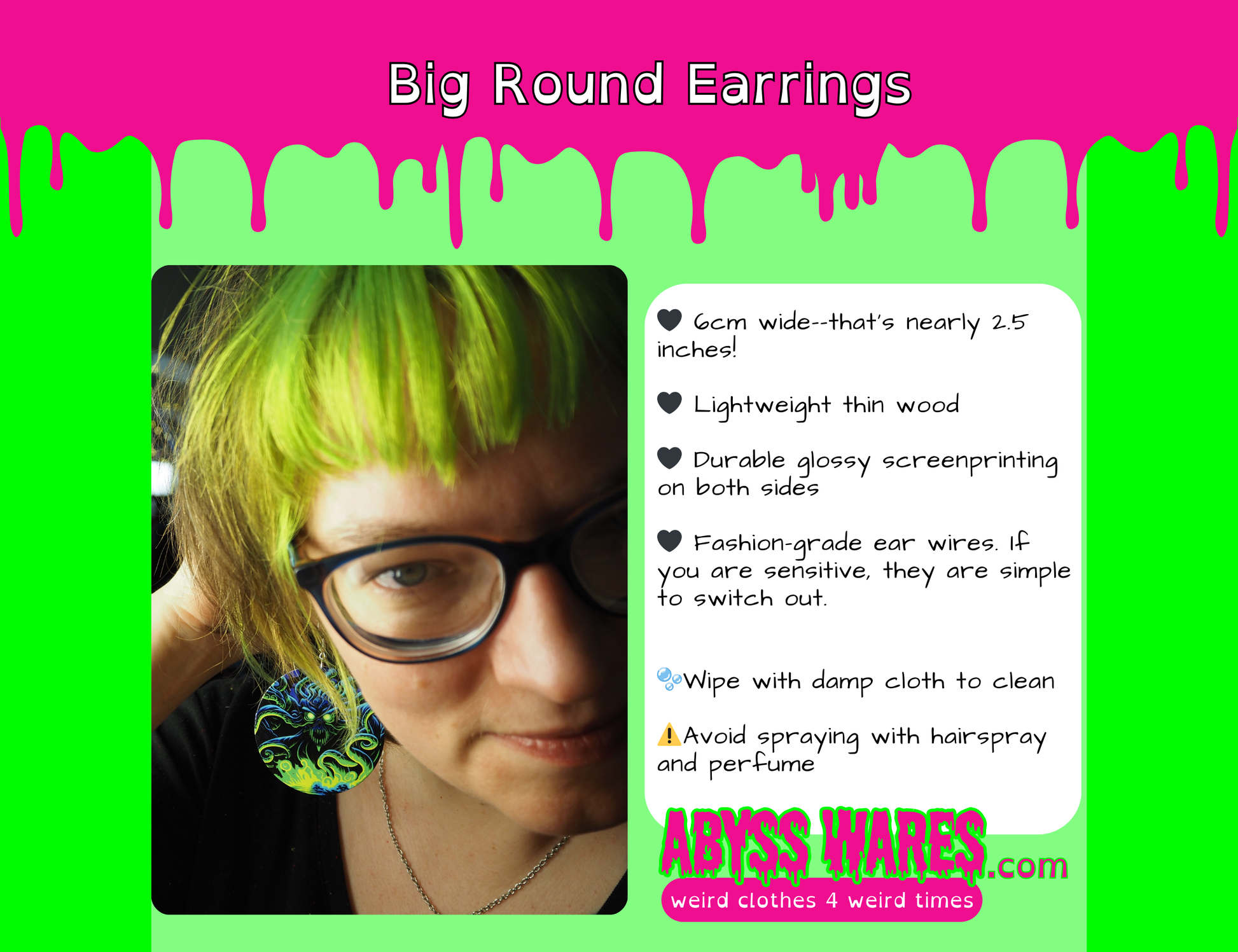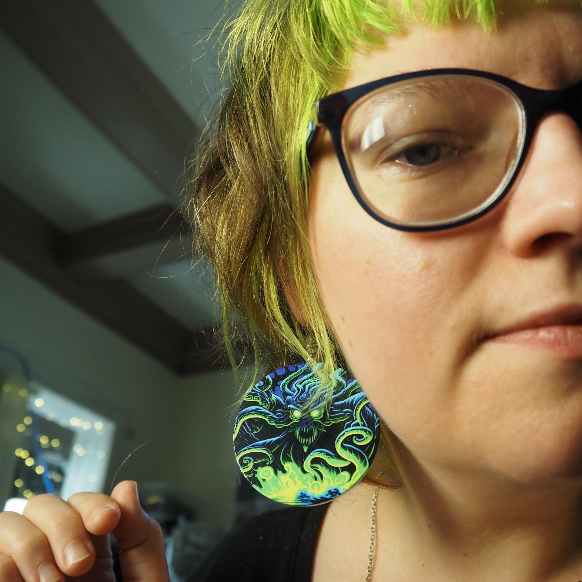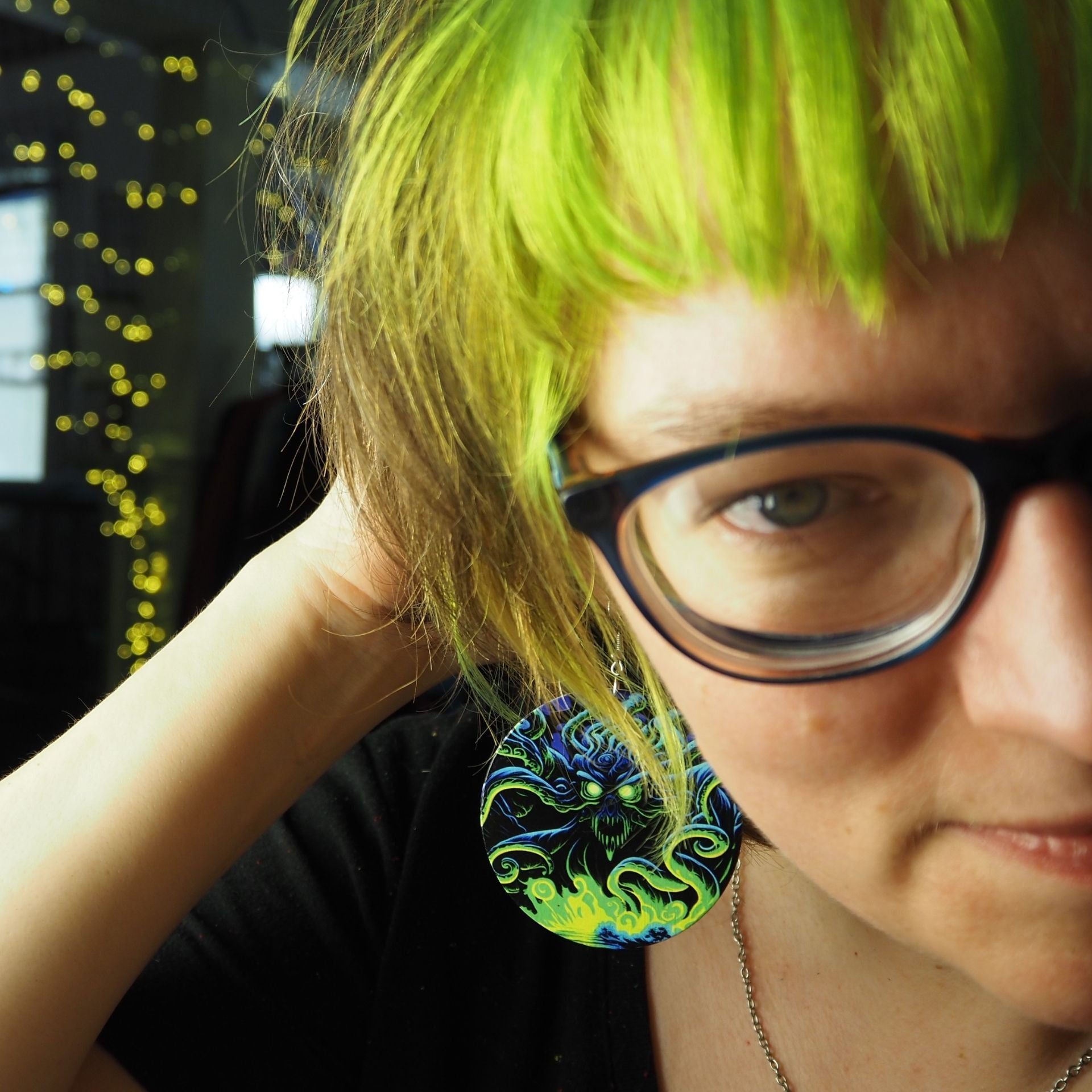 Neon Rage Cthulhu 木耳环是奇异的触手野兽艺术耳环,为您的审美带来奇异的绿色怪异感。